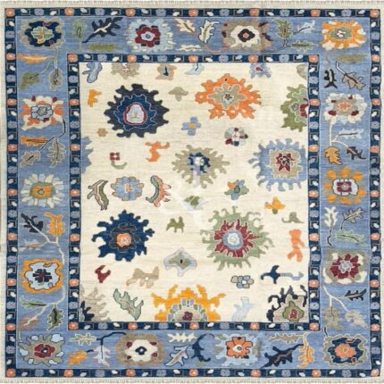 Authentic hand knotted Oushak rug crafted with fine wool, featuring soft tones and timeless traditional patterns.